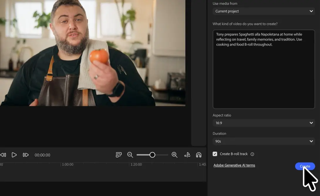Les utilisateurs peuvent télécharger leur propre b-roll ou d’autres fragments vidéo dans l’éditeur vidéo Firefly. Ils décrivent ensuite en quelques phrases le type de vidéo qu’ils souhaitent réaliser, par exemple une interview, une démonstration de produit ou un vlog. Sur la base de ces informations, Quick Cut assemble automatiquement un premier montage en mettant l’accent sur la structure narrative.